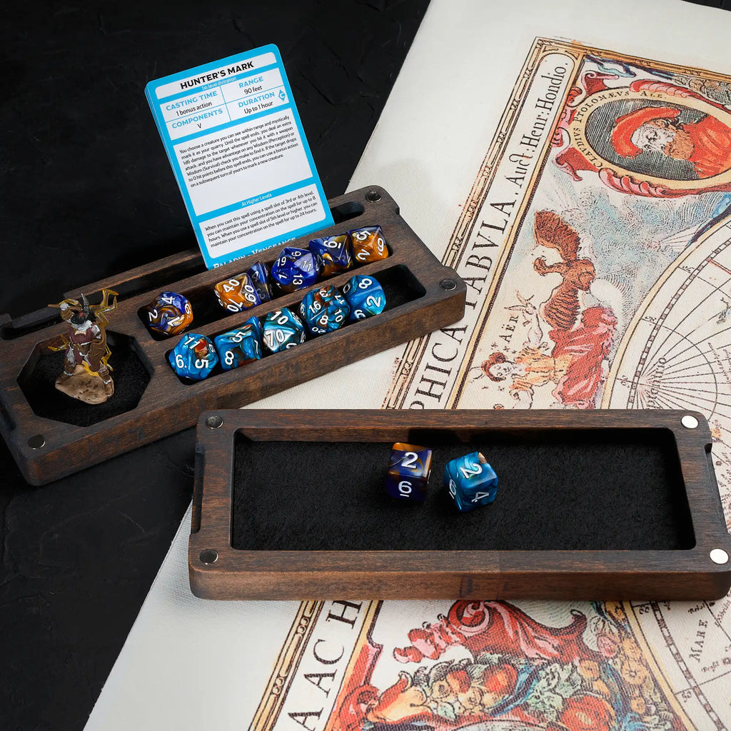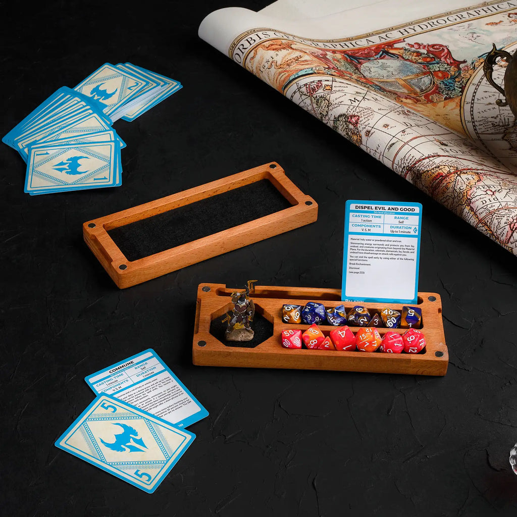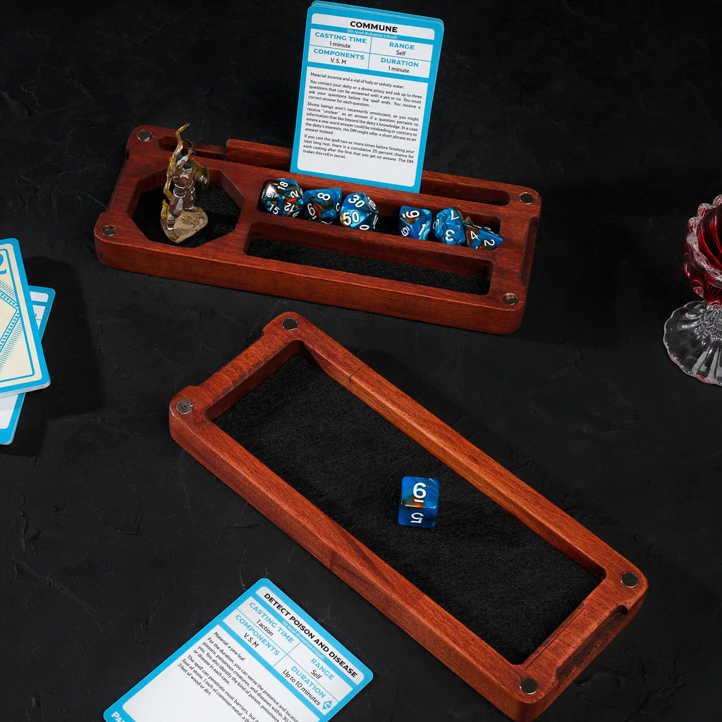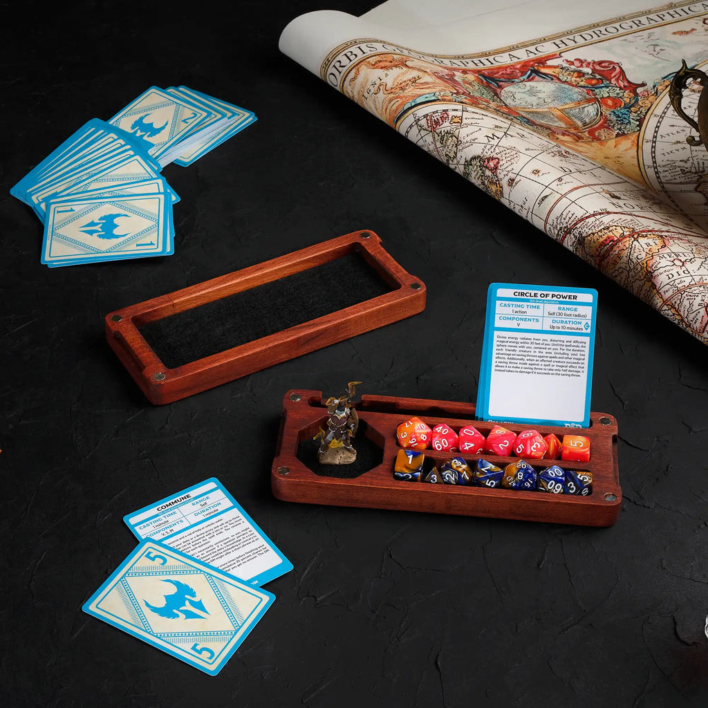 Thanks to its long-studied design, it has slots where you can put your pen and dice. At the same time, the Pen Holder slot is compatible with many tablets and phones! Anytime you want to play dice, you can use the other of the covers as a dnd dice tray!
