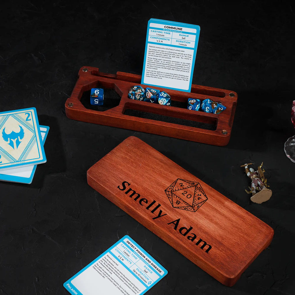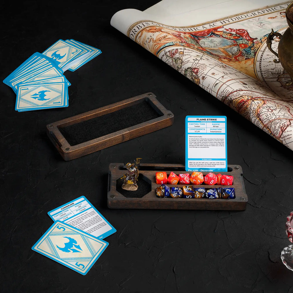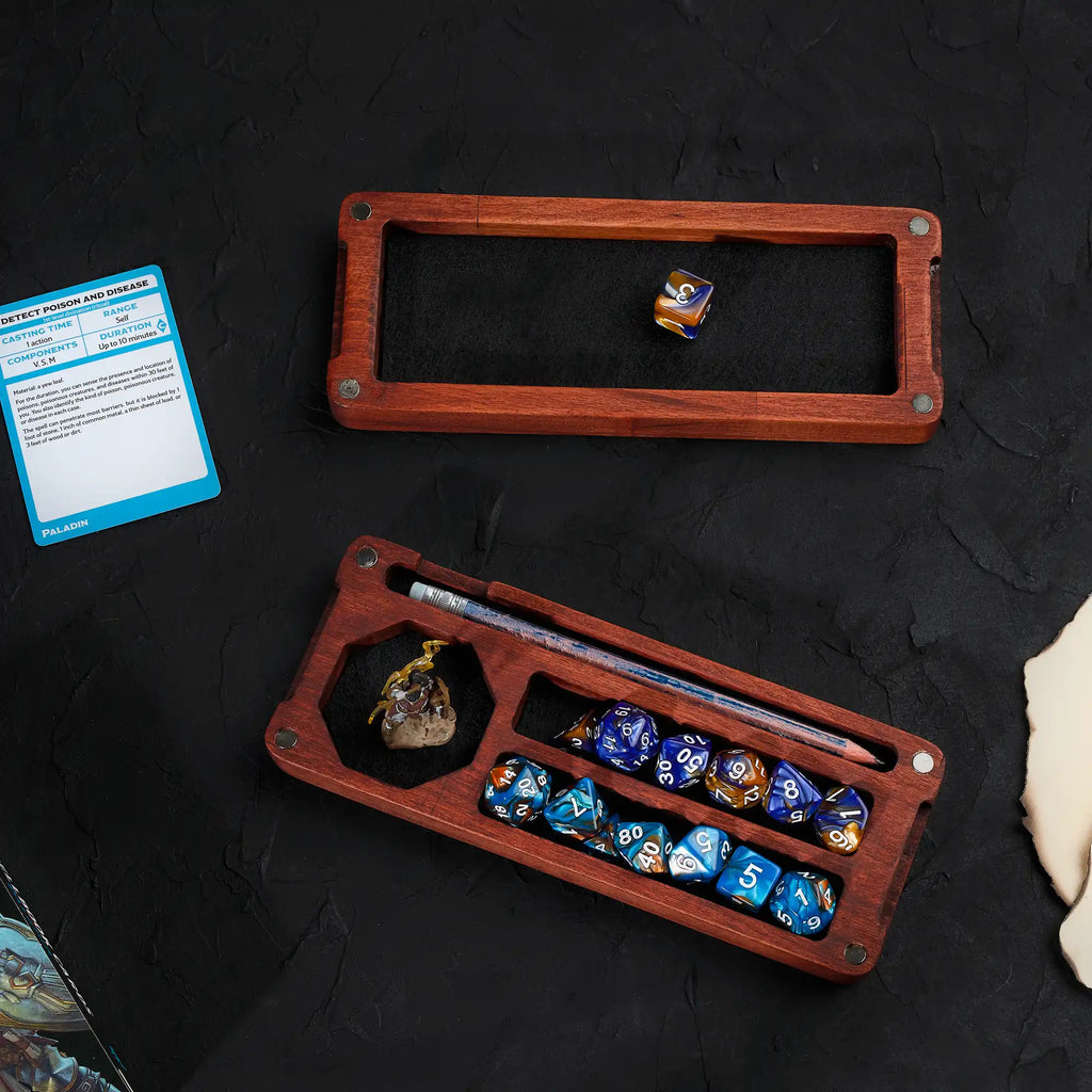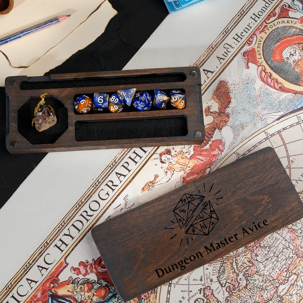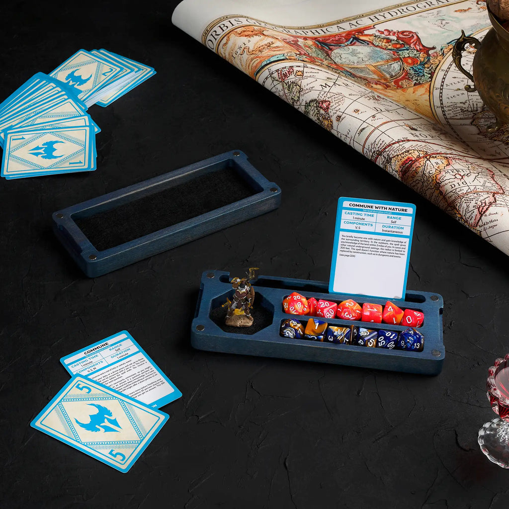Thanks to its long-studied design, it has slots where you can put your pen and dice. At the same time, the Pen Holder slot is compatible with many tablets and phones! Anytime you want to play dice, you can use the other of the covers as a dnd dice tray!